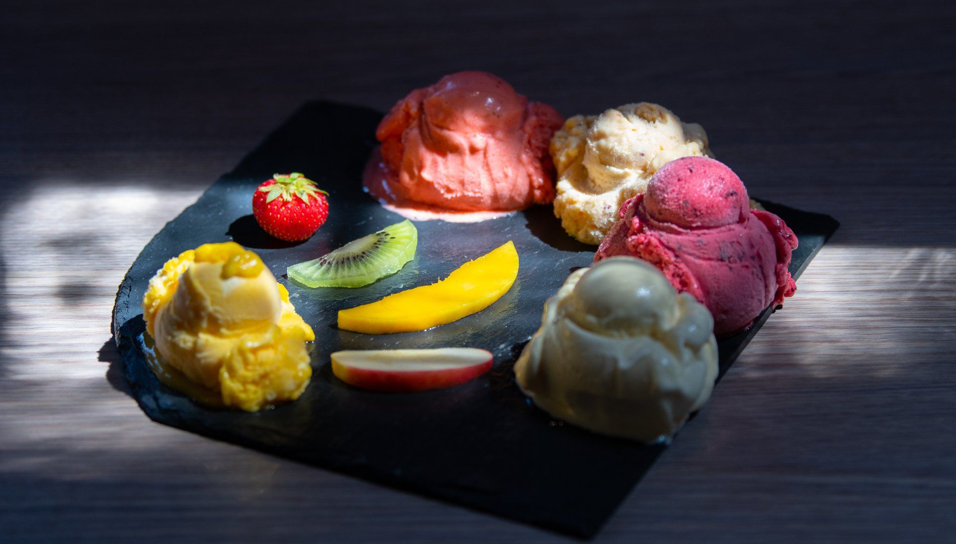 Unsere Fruchteissorten enthalten je nach Sorte 35-45% frische Früchte. All diese sind vegan und laktosefrei.